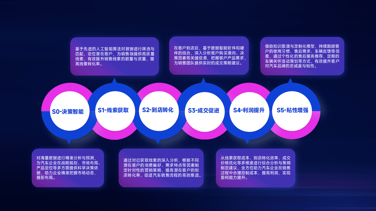 通过拓宽潜在客户来源、、、、优化线索分配并提高到店转化率,,,以增强销售效率。。。。同时,,利用线索数据不断优化分析模型,,,有效提升转化率,,扩大营销影响力。。。